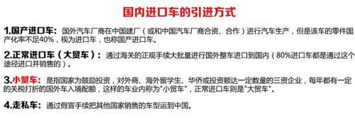 2.質量:進口車在整車品質相的保證方面相對于國產車(合資和自主品牌)有著一定的優勢。此外,核心技術的原汁原味化是進口車型的最大優勢,核心技術的保留會受到一些擁有更高追求的消費者青睞。另外,進口車通常較國產車型來說更新,可以在全球發布后便引入國內,免去了落地國產的生產周期。