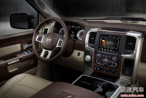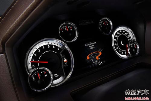 道奇Ram 1500配備了與大切諾基相同的5.7升HEMI自然吸氣發動機,輸出有所調整,其最大功率291Kw,最大扭矩達到552Nm。轉動系統通過5速手自一體變速器和全時四驅系統,將動力傳遞到四個車輪。20寸的鍍鉻輪轂為其增添了一些個性。