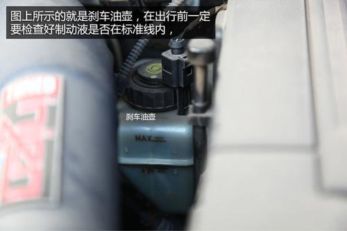 1.打開引擎蓋找到剎車油添加口,看看剎車油壺里的液面是否高或低于刻度線。
