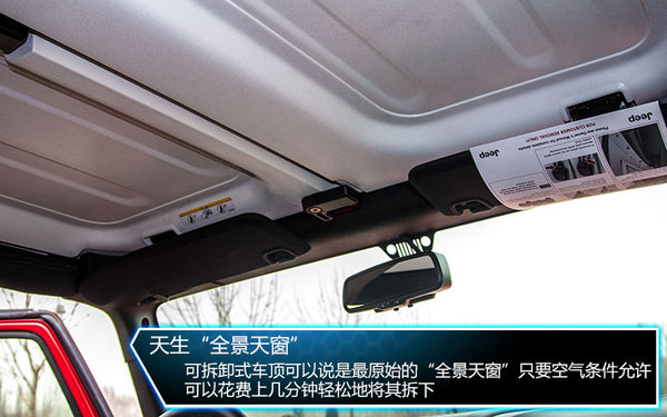 牧馬人天生就是全景天窗車型,只要是車主肯花上些時間,拆下車頂后的通透感一定比任何全景天窗車輛更拉風,如果生活地方并不是霧霾之都,開天窗過日子的場景更能體現(xiàn)出生活質量。