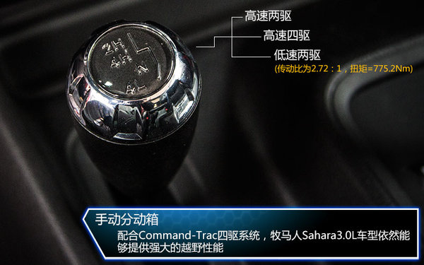 5速自動變速箱是全系的標配,雖然在檔位數(shù)量上占不到優(yōu)勢,但是對于越野而言,穩(wěn)定性和耐用是最大的優(yōu)勢,在配合3.0L引擎,從工信部所獲得的信息來看,平均油耗只有11.6L。牧馬人之所以成為全球性能最強的專業(yè)SUV,核心源于其業(yè)內最專業(yè)的分時四驅系統(tǒng),通過分動箱來切換驅動方式,在低速四驅模式下,傳動比為2.72:1,扭矩被放大到775Nm,能夠順利幫助脫困。