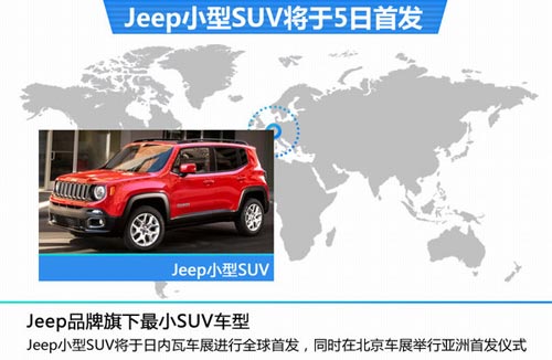 在今年3月5日即將開幕的2014日內瓦車展期間,Jeep將帶來全新小型SUV、牧馬人Stitch概念車的全球首發車型,其中小型SUV將是旗下最小的SUV車型,而該款車型推出后,Jeep品牌旗下產品線將進一步豐富。