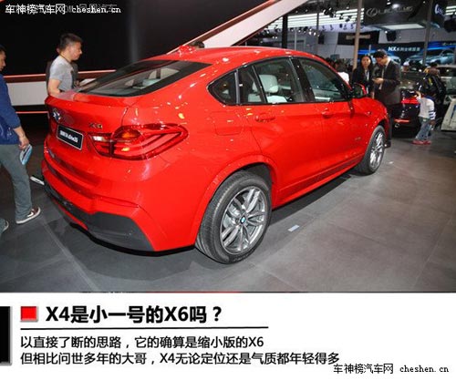 X4乍一看有點像縮小的X6。的確,因為X4的產(chǎn)品特性與X6高度一致--將SUV(寶馬稱為SAV)的高通過性、大空間實用性與轎跑車的優(yōu)雅、動感結(jié)合起來。