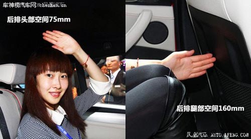 然后前排座椅不動,模特坐在駕駛員后方座椅,體驗后排頭部空間和腿部空間。