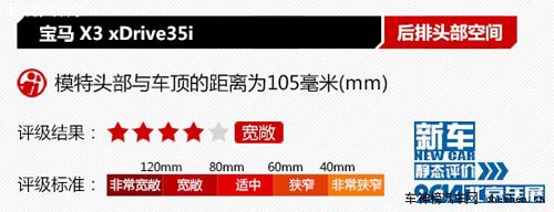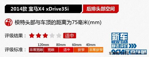 前排的空間表現(xiàn)與X3幾乎完全一致,頭部空間足夠?qū)挸ā6笈攀艿杰図斚铝锞€條的影響會有一定程度的壓縮,不過實際體驗的效果還好,172cm的模特在后排頭部仍有75mm的余量,只比前排減少了2cm,差不多也就兩根手指還不到的變化。