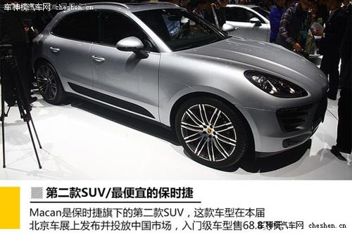 Macan是保時捷旗下的第二款SUV車型,也是相比Cayenne級別更低的SUV。這款車型在本屆北京車展上正式發(fā)布并投放中國市場,其中入門級的Macan S售價為68.8萬元,這個價格已經(jīng)低于此前最便宜的保時捷Boxster了,但是提供的實用性是Boxster無法比擬的。