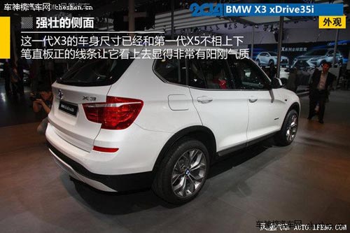 盡管X3更像是老大哥X5的縮小版,但細(xì)節(jié)之處X3并不會因為級別比X5低而削弱整體的檔次感。通過官方圖片,我們可以看出X3前臉在保留了標(biāo)志性的雙腎型進氣格柵以及整體X型設(shè)計元素的同時,也融入了寶馬家族的最新設(shè)計語言,與新X5一樣采用了新的中網(wǎng)邊框設(shè)計,在視覺效果上更具沖擊力。
