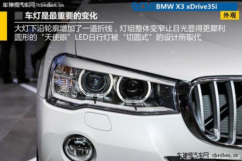 在頭燈部分,新設(shè)計的雙圓大燈立刻就能攫取別人的目光,不規(guī)則的燈組造型比現(xiàn)款顯得更為纖細(xì)。另外,日間行車燈的圓形天使眼已經(jīng)被新的“切圓式”設(shè)計所取代,配置方面它還可以選用全LED光源,再加上選配的LED霧燈,更加突出地表現(xiàn)寶馬X3的尊貴氣質(zhì)。