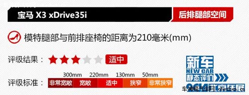 后排腿部空間和X3似乎沒有什么差別,在中型豪華SUV里屬于比較好,但還不是最好的。不太滿意的是后排寬度,坐3個成年人會感覺有點擁擠。另外中間乘客的舒適度受到高地臺的影響,沒有足夠的放腳空間。所以后排乘坐2個人會非常舒適,乘坐三個人最好是苗條的女性,而且不要走長途。