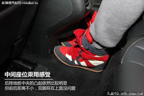 第二排座椅可以前后調(diào)節(jié),但這并不能改善體驗者腿部空間的表現(xiàn),180mm的空余只算適中。因為底盤高度較高,后排座椅也存在坐姿較高的問題,而且是不能調(diào)節(jié)高低的,因此體驗者頭部僅有60mm的空余,在SUV中算比較狹窄的了。僅從乘員腿部和頭部空間看,自由光的空間表現(xiàn)一般,與緊湊級轎車的水平相當(dāng)。