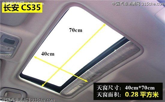天窗尺寸最大的無疑是配備全景天窗的標(biāo)致2008,0.54平方米的面積擁有非常好的采光效果,對(duì)年輕用戶來說是一大吸引力。其次長安CS35和瑞虎3的尺寸緊隨其后,0.28和0.26平方米面積也很突出。