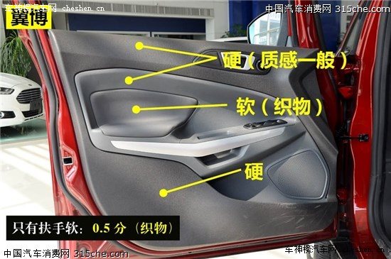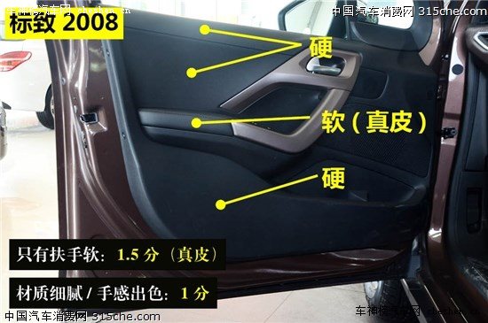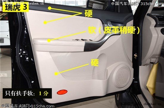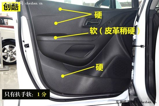 評(píng)分標(biāo)準(zhǔn):中控材質(zhì)用料項(xiàng)目總分為3.5分。其中整個(gè)中控面板全部采用軟材料得3.5分;中控部分采用軟材料得2.5分;中控全部為硬塑料得1.5分。另外,中控面板觸感分三級(jí):紋理細(xì)膩、觸感舒適得1.5分;手感一般得1分,塑料感較強(qiáng)得0.5分。