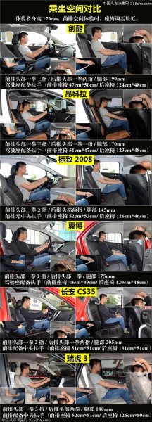 對(duì)小型城市SUV來說,乘坐空間是大家最為關(guān)心的問題,也是影響消費(fèi)者選擇的重要指標(biāo)。6款小型SUV在前排空間上都表現(xiàn)出色,昂科拉、創(chuàng)酷和瑞虎3前排空間都有一拳三指的距離,而翼搏、長安CS35以及標(biāo)致2008也有一拳兩指的距離,差異比較小。后排乘坐空間差異是重點(diǎn)。后排空間最有優(yōu)勢的無疑是瑞虎3,由于車身構(gòu)造原因,后排頭部空間達(dá)到2拳,而腿部空間18cm中規(guī)中矩。創(chuàng)酷和長安CS35后排頭部空間都是一拳兩指距離,腿部空間是CS35更有優(yōu)勢,也是6款車型中腿部空間最大的。翼搏后排一拳的頭部空間和17.5cm的腿部距離都不算差。標(biāo)致2008后排只有2指的距離,腿部空間為14.5cm要落后其它5款車型。