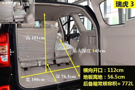 | 瑞虎3 | 34cm*75cm | ≈0.26平方米 | 1.5分 |