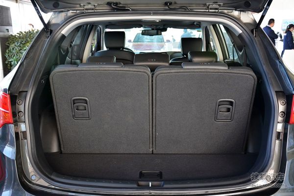 乘坐空間表現還算令人滿意,頭部和腿部都有一拳以上的空間,而且第二排座椅靠背可以調整角度,這可以極大的緩解頭部空間不足所帶來的壓力。第三排座椅采用折疊可收藏式設計,這絕對只是為了應急的時候才會使用的功能,平時沒有那么多乘員,大可以把第三排座椅收藏,以提高整車的儲物空間。第三排的空間會比較局促,一般成年人坐下去都會覺得空間的不足,但如果實在沒轍了也可以湊合湊合。