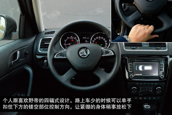 野帝的內飾整體與海外版新款Yeti基本相同,只是方向盤樣式略有改動,跟新、老款Yeti都不一樣。空調出風口根據國內消費者的喜好增加了鍍鉻裝飾,更顯檔次感,但是中控臺的材質不如海外版新款Yeti出色,后者采用的是軟質搪塑材質,手感很棒,而野帝基本哪哪都是硬邦邦的。