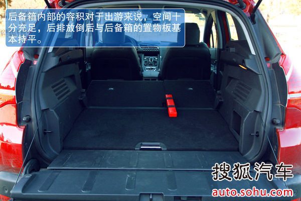 雖然翼虎后排座椅不能前后移動,但椅背可以調整角度,長途乘坐舒適性很不錯。對于那些經常需要帶大量物品外出的用戶而言,翼虎的大容積后備廂是個不得不說的賣點,960L的容積完勝不少同級對手,在放倒后排座椅后更可以擴充到1915L。