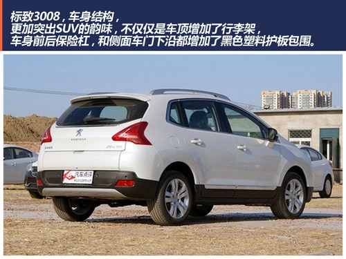 標致3008更加突出SUV的韻味,不僅僅是車頂增加了行李架,車身前后保險杠,和側面車門下沿都增加了黑色塑料護板包圍。外觀細節上標致3008還大量加入了鍍鉻裝飾元素,整個側面車窗都用寬幅的鍍鉻線條圍繞起來,重新設計的側后方舷窗線條。
