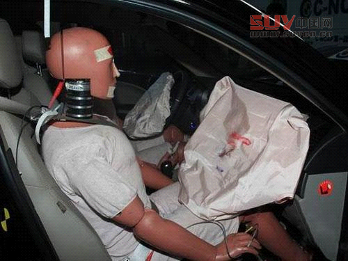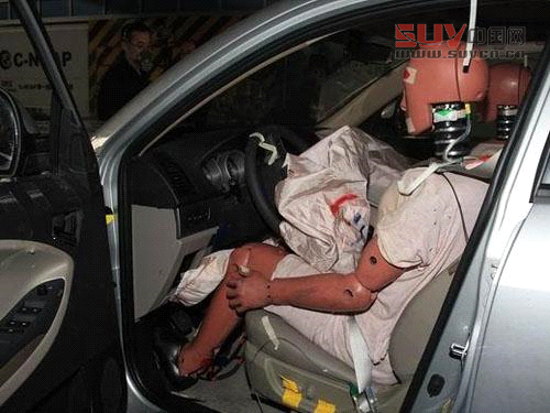 駕駛員假人坐姿基本正常,側氣簾正常打開。