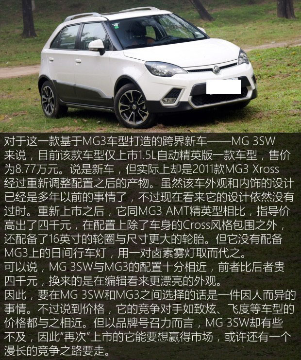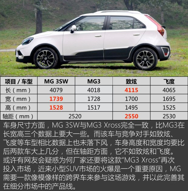 上汽MG曾經推出過MG 3SW以及新MG3的Cross車型——MG3 Xross,不過在當時的汽車銷售市場上它們似乎有些生不逢時,上市之后交出的銷量數據一直都不算太好。而這段時間可謂是消費者和各種小型SUV與跨界車的蜜月期,如本田X-RV、瑞風S3、哈弗H2等小型SUV的關注度一直都很高。伴隨著消費者們對這類車型的熱情關注,跨界車型的關注度也開始水漲船高,于是上汽MG將MG3 Xross車型調整配置之后重新推向了市場。