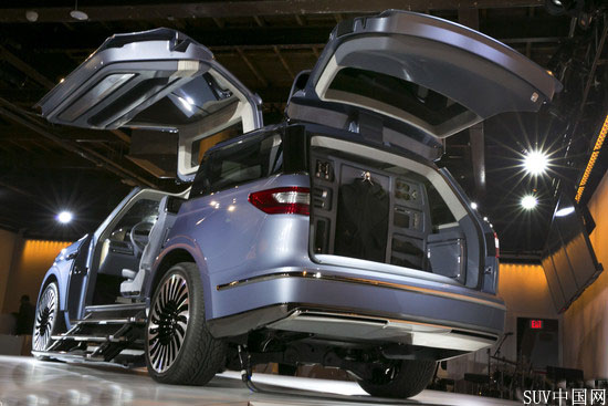 SUV配備鷗翼門,咦,這不是特斯拉剛剛做過的事兒么。我們先不說是不是抄襲了Model X,在全尺寸SUV上提供前后能讓前后兩排乘客都能舒服上下車的鷗翼門,領航員概念車這還是第一款。除了這個有點夸張的鷗翼門,在這款車上我們還能發現諸如后備箱衣帽間、能偶伸縮到底的電動臺階等相當人性化的設計,注重用戶體驗,這不是正式我們所追求的嗎。