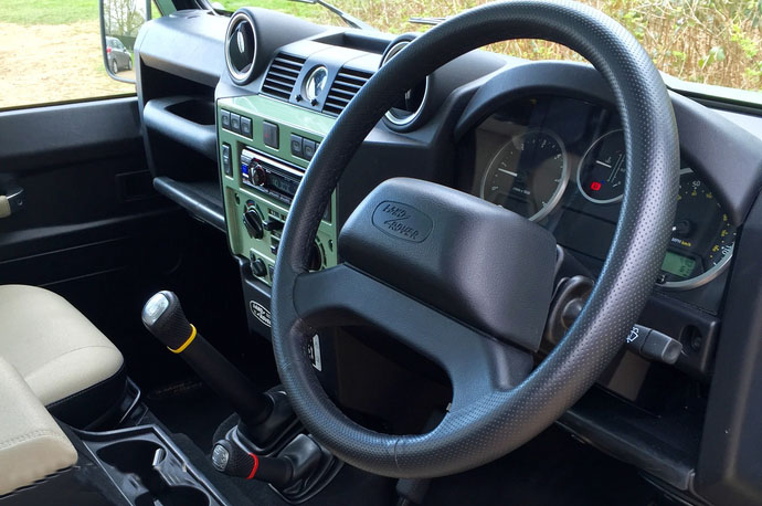 跟所有Heritage車型一樣,我們選擇的短軸距90 Heritage也帶有格拉斯米爾綠色的車身涂裝,阿拉斯加白色車頂,16寸輪圈與高側(cè)壁的米其林Latitude Cross輪胎。