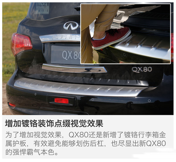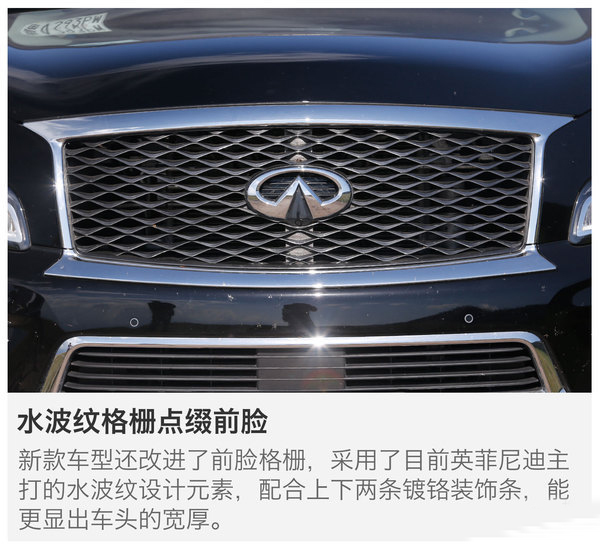 新的改款車型不但帶來了更多更新鮮的配置,也有著更驚喜的市場價格。再不斷刷新受眾底線的今天,新款QX80的到來會不會意味著"老三樣"扎堆的大型豪華SUV市場又將迎來一場血戰?