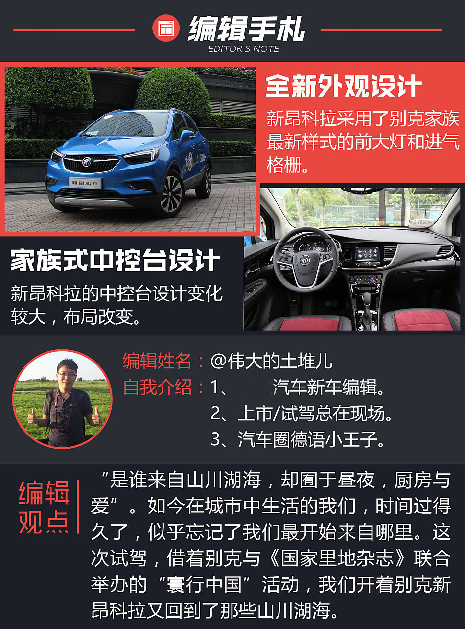 【SUV中國網(wǎng)】“是誰來自山川湖海,卻囿于晝夜,廚房與愛”。如今在城市中生活的我們,時(shí)間過得久了,似乎忘記了我們最開始來自哪里。這次試駕,借著別克與《國家里地雜志》聯(lián)合舉辦的“寰行中國”活動(dòng),我們開著別克新昂科拉又回到了那些山川湖海。