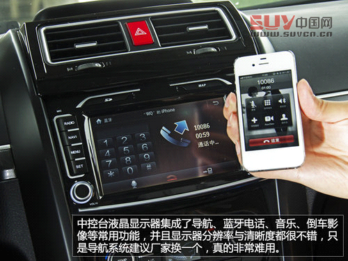 儀表的行車信息顯示屏加入了升檔降擋提示功能,并且全新的鋼琴漆面中控臺操作面板在檔次上有了很強的提升,同時上面的液晶顯示屏還具有導航、藍牙電話、倒車影像等功能。