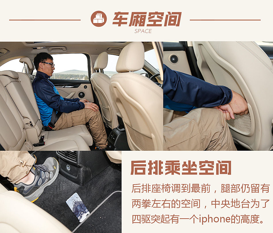 以前那個后排怎么坐都頂腿的X1早已是過去,全新X1的的空間可不像外觀看上去那樣只是大一些,而是大了一個級別,還巧妙的把利用率放到最大化,寬敞規(guī)整超乎了我們的預(yù)期。