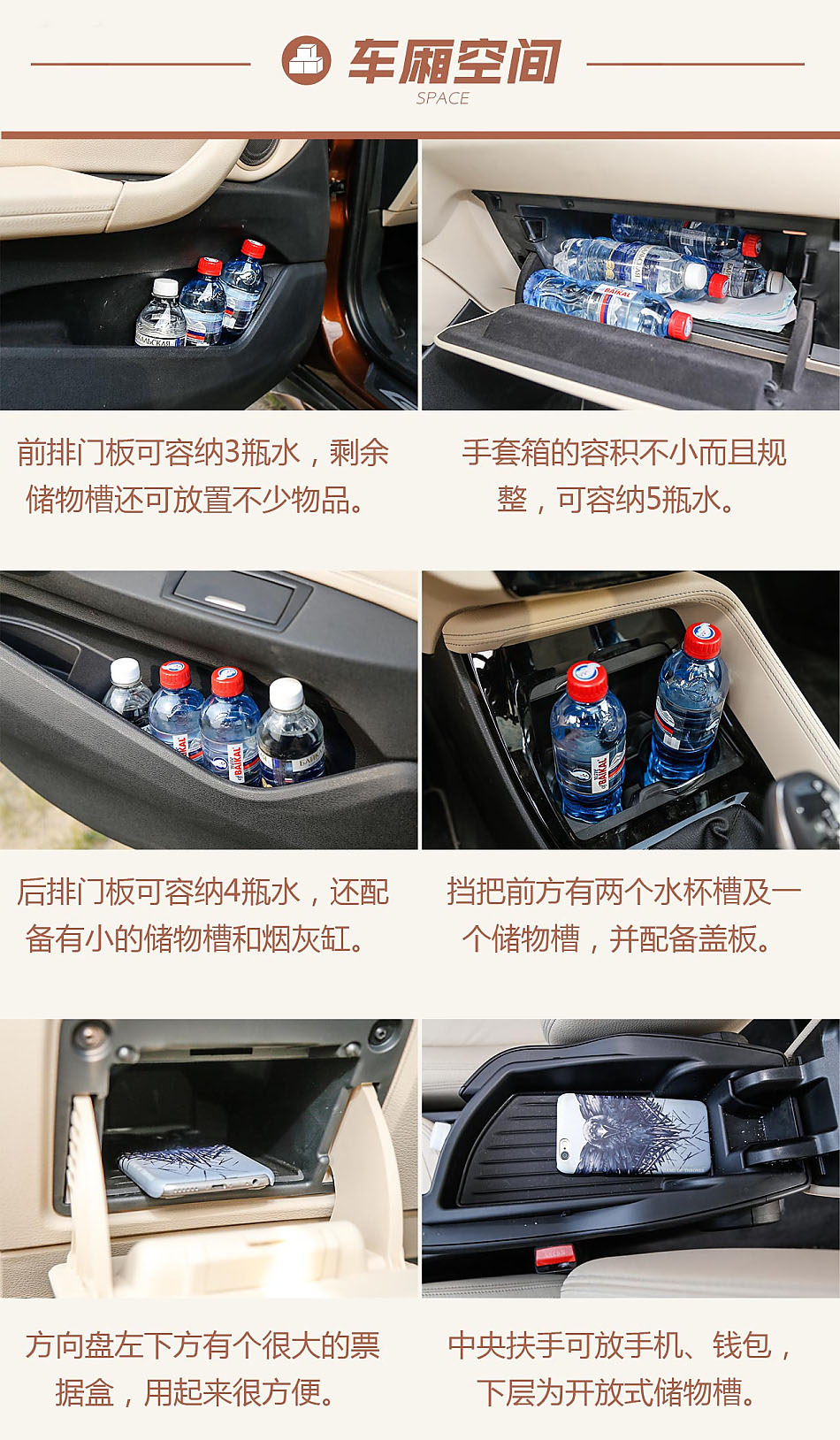 全新X1的儲物空間很值得稱贊,豐富+大,常規(guī)的儲物槽都做的很大,使用起來方便且人性化,中央扶手下方還有個開放式儲物槽,放置放錢包之類的東西拿取很方便,門板的儲物槽除了水杯架還設(shè)計了小物件的儲物格,處處可以體現(xiàn)設(shè)計師的用心。