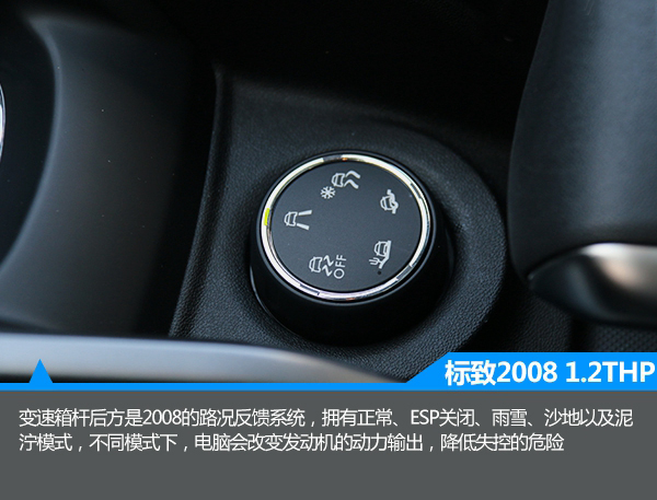 1.2THP版本車型搭載了一臺全新的1.2T渦輪增壓發動機,該引擎僅有三個氣缸,但是賬面數據卻令人驚嘆,不僅可以爆發出100kW的最大功率,同時還能輸出230N·m的峰值扭矩,與之匹配的是一臺6速手自一體變速箱。此外,該車配備了類似于全地形反饋系統,根據不同路況,調整旋鈕,電腦可以控制發動機的動力輸出,以確保車輛可以克服一定的障礙。美中不足的是,2008全系沒有配備四驅系統,不如四驅車型有更好的行駛穩定性。