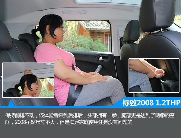 盡管定位于小型城市SUV,但是2008還是可以滿足大多數家庭使用的。身高165cm的女性體驗者調整好坐姿后,頭部依然有一拳多的空間,保持前排不動,該體驗者來到后排之后,頭部同樣可以保證一拳的空間,腿部則達到了兩拳的空間,盡管是小型SUV,但是2008的空間表現值得肯定。此外,該車的儲物空間也比較豐富,大多數的物品都能找到收納之所。