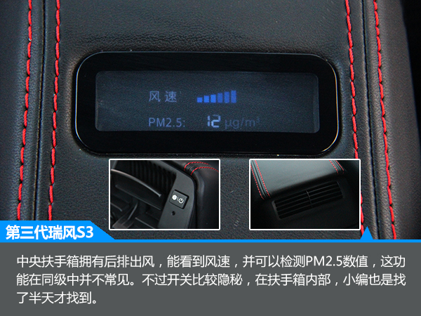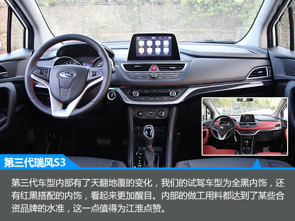 坐進駕駛艙內,你會感覺到升級后的內飾幾乎看不到原來老款車的影子,本次升級把內部的質感、品質都提升了一個檔次。大面積的軟性材質,接縫處采用紅色細線縫合。中控大屏營造了很強的科技氛圍,尺寸為8英寸,可以觸屏操作。良好的分層設計,就算物理按鍵多,也并不影響美觀,按鍵阻尼舒適度不錯。儀表盤回歸傳統的雙炮筒,行車電腦尺寸變大。這種質的“進化”使瑞風S3內部更加逼近合資車型。