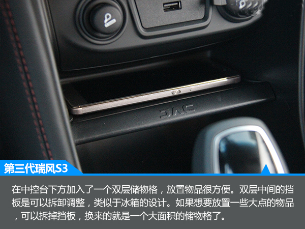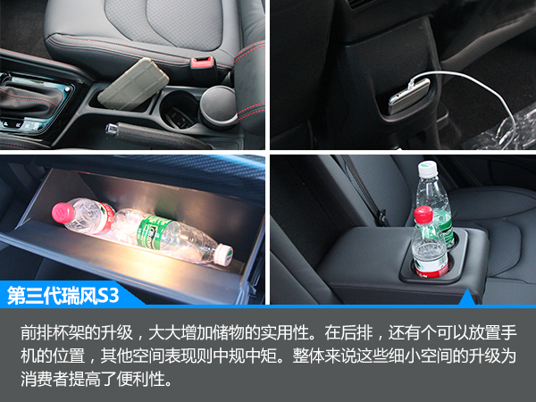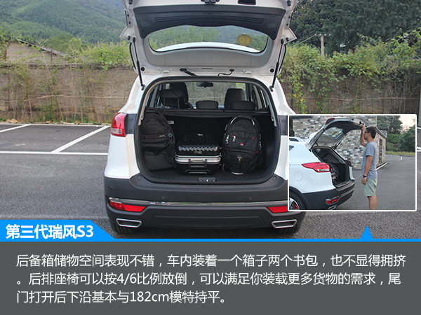 由于車身尺寸并沒有變化,所以空間只是做了些優化。從實際效果來看,江淮瑞風S3的內部空間得到了很好的傳承。身高182CM的模特,在前排保持正常駕駛坐姿,頭部空間有一拳多的余量。保持前排座椅不變,來到后排,膝部空間有一拳,頭部空間保持在一拳四指左右,這樣的空間表現可以說是非常不錯。新款座椅更加寬大,包裹性更好,美中不足的是手動調節,還是有些不方便。后備箱儲物空間同樣值得肯定,另外在后備箱還增加了12V電源。