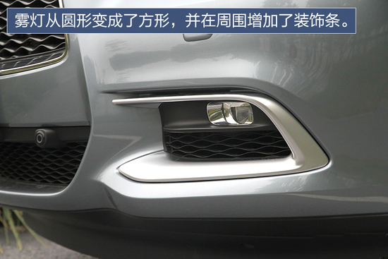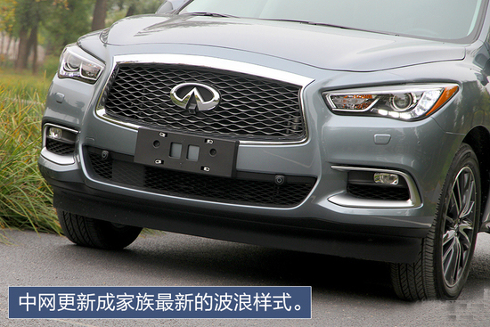 中網(wǎng)從原來的橫條格柵變?yōu)榱烁哔|(zhì)感的波浪式紋路,該設(shè)計(jì)也是目前英菲尼迪最新的家族風(fēng)格,在其他車型上都有所體現(xiàn)。另外,大燈和霧燈的設(shè)計(jì)也發(fā)生了變化,比老款車型精神很多。