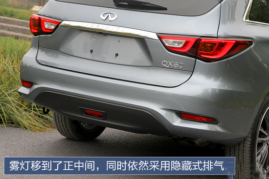 車尾最大的變化同樣來自于燈組部分,在調(diào)整之后樣式與Q50L有些相似,點(diǎn)亮之后很漂亮。此外,霧燈被挪到了正中間,同時(shí)排氣依然采用隱藏式設(shè)計(jì)。