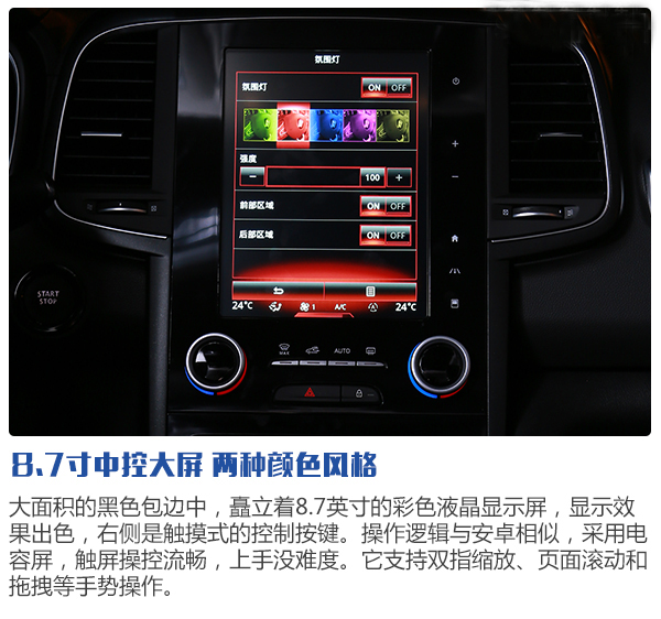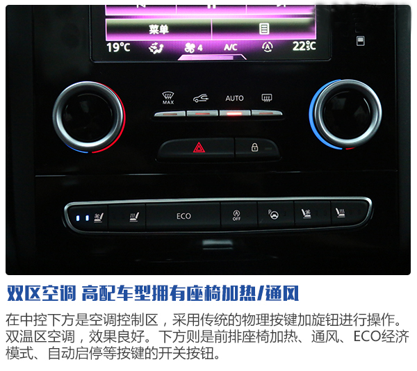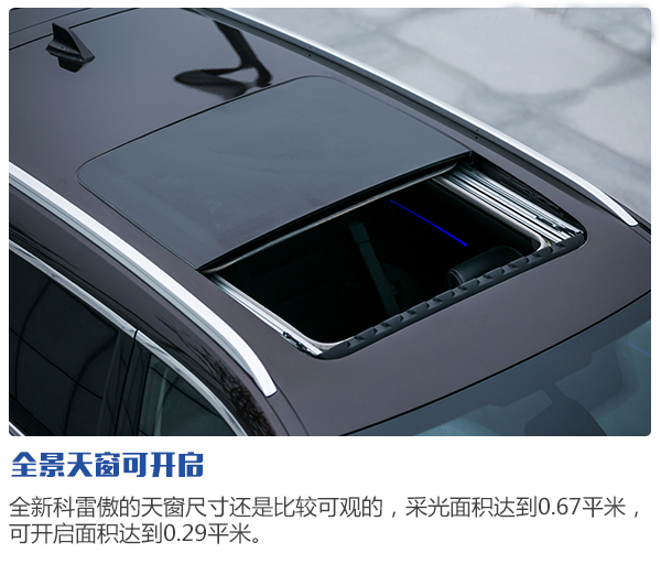 小結(jié):科雷傲的內(nèi)飾很強(qiáng)大,做工用料的考究,足矣看出它的野心。配置也相當(dāng)?shù)呢S富,不僅擁有中控大屏、雙區(qū)空調(diào)、定速巡航、液晶儀表、全景天窗等眾多配置外,同時(shí)在主動安全方面也擁有車道偏離警告、盲區(qū)提醒等駕駛輔助功能,可以滿足消費(fèi)者的大部分需求。不過只有主駕車窗可一鍵升降算是不太厚道。