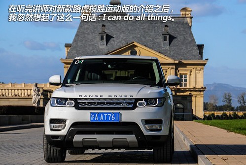 SUV中國網(wǎng) 在聽完講師對新款路虎攬勝運動版的介紹之后,我忽然想起了這么一句話:I can do all things。其實這是圣經(jīng)里的一句話,作為一名非教徒我自然不可能熟讀圣經(jīng),就更別提記住其中的某句話了,這完全是因為我很欣賞的一位NBA球星將這句話作為了格言,至于是誰?你可以去百度一下“庫里”。好了,閑話扯完了,還是看看攬勝運動版是否真如講師說的那樣出色吧。