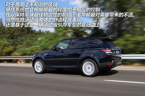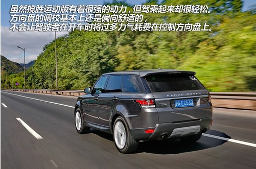 雖然攬勝運動版有著很強的動力,但駕乘起來卻很輕松。方向盤的調(diào)校基本上還是偏向舒適的,不會讓駕駛者在開車時將過多力氣耗費在控制方向盤上。對于路面上不和諧的區(qū)域,懸掛系統(tǒng)也會根據(jù)顛簸的程度給予相應(yīng)的控制,在以保持車身最佳穩(wěn)定性的前提下緩沖顛簸對乘客帶來的不適。當(dāng)然攬勝運動版整體的舒適程度表現(xiàn),還是基于這是一輛運動版SUV車型的基礎(chǔ)之上。