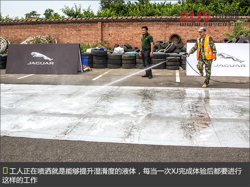 由于夏天的原因,要想體驗出冰面上的所帶來的不同的駕駛感受,主辦方只是采用了一種類似于冰雪路面的模擬路段,它的濕滑程度絕對能讓XJ的四驅系統快速的進入工作模式。