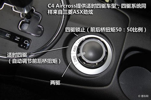C4 AIRCROSS采用智能四驅系統,這套系統可在前驅、四驅及四驅鎖定這3種驅動模式間切換。四驅模式時,后輪最多可得到50%的動力,主要用來應對冰雪及濕滑等復雜路況;而在四驅鎖定模式,后輪鎖定可獲得50%的扭力,比不帶中央差速器鎖的普通適時四驅擁有更強的脫困能力。