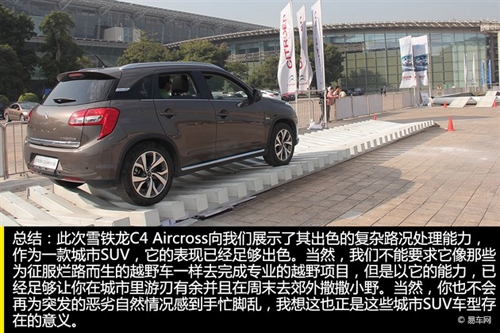 在這一科目上C4 AIRCROSS還是比較從容的,但是也暴露了一些城市SUV都有的短板,可能如果再將道具的難度提高一些的話C4 AIRCROSS就很難脫離困境了。