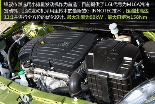 鋒馭依然選用小排量發(fā)動機作為首選,目前全系均搭載一款1.6L自然吸氣發(fā)動機,此款發(fā)動機采用里鈴木的最新的G-INNOTEC技術(shù),壓縮比高達11:1并進行全方位的優(yōu)化設(shè)計,使得其最大功率到達90kW,最大扭矩為158Nm。在與廠商工作人員交談得知,以后可能還會引進1.4L渦輪增壓發(fā)動機車型。