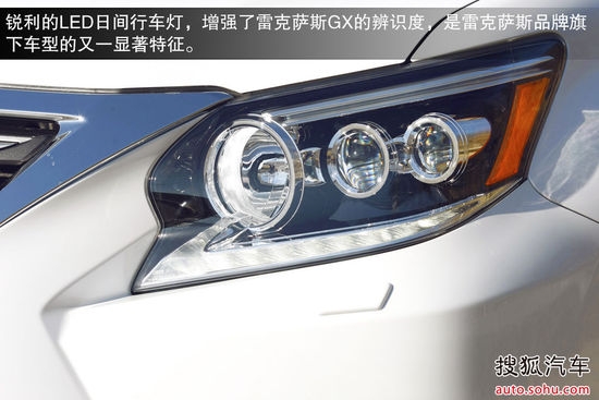 回到產品本身,在近些年的車展上雷克薩斯LF-NX概念車已經向我們展示了雷克薩斯最新的設計思路。夸張的紡錘形格柵,已經成為雷克薩斯最突出的品牌特征。這也是現款雷克薩斯GX400和曾經的GX460以及2012款最大的不同之處。銳利的日間行車燈增強了雷克薩斯GX400的識別度。
