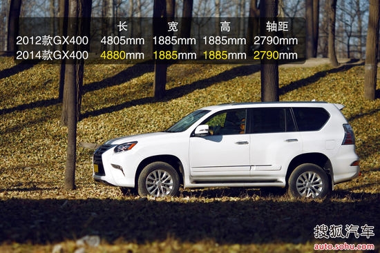 由于前格柵的變化,雷克薩斯GX的車身長度有所變化,寬高和軸距與前款車型相同,內部空間也保持了一貫的寬敞。輪輻更為密集,輪胎規格未變,但是視覺上增強了GX400的時尚感,少了一些野味。當然登車踏板之類的便捷配置依然保留。
