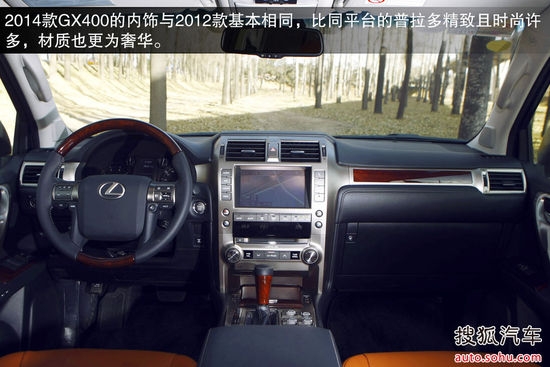2014款GX400與2012款采用了相同的內飾設計。與普拉多相比,GX400擁有更時尚典雅的內飾設計,以及更為奢華的材質選擇。