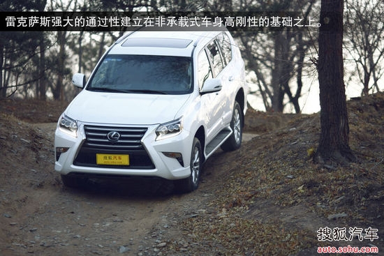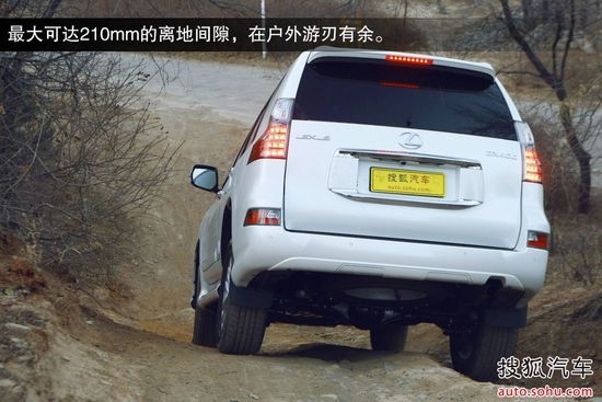這些強大的越野性能均建立在雷克薩斯GX400的非承載式車身結構基礎之上,它能夠應付高強度越野的需要。雖然新的造型使車身長度略微增加,但并沒有影響其通過性能。它依然有著高達22.3°的接近角。離地間隙分三檔可調,最大可達210mm保證了其在戶外行駛時的通過能力。