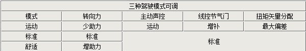 全新MDX還加入了綜合動(dòng)力系統(tǒng),該系統(tǒng)可根據(jù)駕駛者的需求來(lái)定制所需的動(dòng)態(tài)性能。主要有三種模式:運(yùn)動(dòng)、標(biāo)準(zhǔn)、舒適,并根據(jù)轉(zhuǎn)向力大小需求在三種模式間切換。在各種模式下,ECU會(huì)根據(jù)相對(duì)應(yīng)的模式來(lái)調(diào)整方向盤的轉(zhuǎn)向力度,運(yùn)動(dòng)模式更加激進(jìn),而舒適模式則更加適合定速巡航行駛。