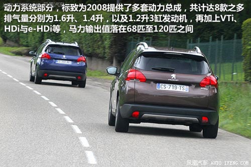 動力系統部分,標致為2008提供了多種發動機的搭配選擇,共計達8款之多,排氣量分別為1.6升、1.4升,以及PSA集團最新動力技術打造的1.2升3缸發動機,再加上VTi、HDi與e-HDi等,展現出動力單元的多樣性,馬力輸出值落在68匹至120匹之間。因應臺灣市場消費主流需求,總代理寶嘉聯合主打1.6升級距動力配置,包含汽油版本的1.6 VTi以及柴油之1.6 e-HDi;而這也是這趟2008法國斯特拉斯堡試駕之旅,最主要試駕的兩種車款。
